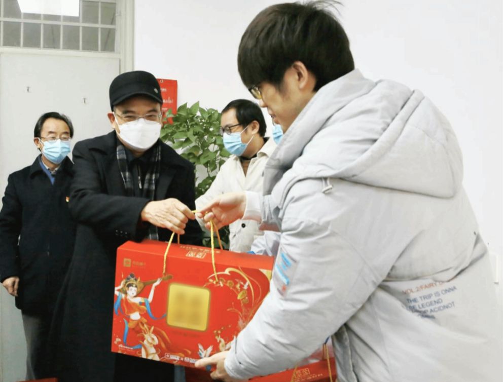 唐峻一行走进实验室和学生寝室,与留校学生亲切交流,询问同学们学习生活情况和健康状况等,嘱咐学生寒假期间继续做好个人防护,当好自己健康的第一责任人;同时鼓励同学们利用好寒假,好好学习、规律作息、积极锻炼,度过一个安全、充实、有意义的假期。唐峻提醒同学们要保持与老师的沟通交流,遇到困难及时反馈,学校会竭尽全力为大家提供学习生活各方面的保障,确保大家在校期间的健康安全稳定。走访中,校领导与科研教师和工作人员进行深入交流,对寒假期间坚守一线岗位的师生及工作人员表示感谢,向他们致以节日祝福并送上新春慰问品。