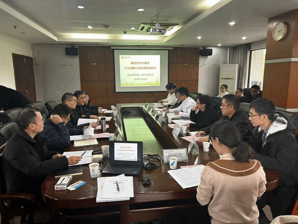 本网讯 12月13日,学校在黄家湖校区A座二楼会议室召开湖北时珍实验室平台功能与设备需求专家论证会。会议邀请了华中科技大学精准医学测试中心建设召集人、分析测试中心医学分中心主任田青,协和医院中西医结合科主任医师唐庆,武汉理工大学国有资产与实验室管理处处长熊兵,湖北江夏实验室主任助理黄方、研究员刘艺、科研部部长赵丽君、综合部部长江琦等专家参加。校长刘松林会见了专家组成员。副校长杨波,科发院、基本建设处、资产与实验室管理处负责人,时珍实验室工作专班综合组成员参加论证会。会议由杨波主持。