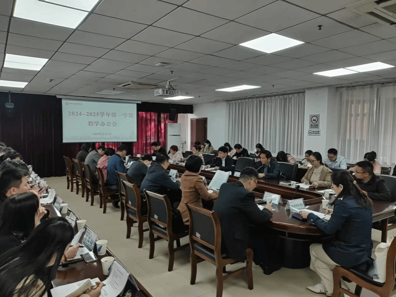 本网讯 11月6日,学校在黄家湖校区明德楼A座一楼会议室召开秋季学期第二次教学办公会。党委常委曹继刚主持会议,各学院分管教学工作负责人、教学秘书及相关职能部门负责人参加会议。