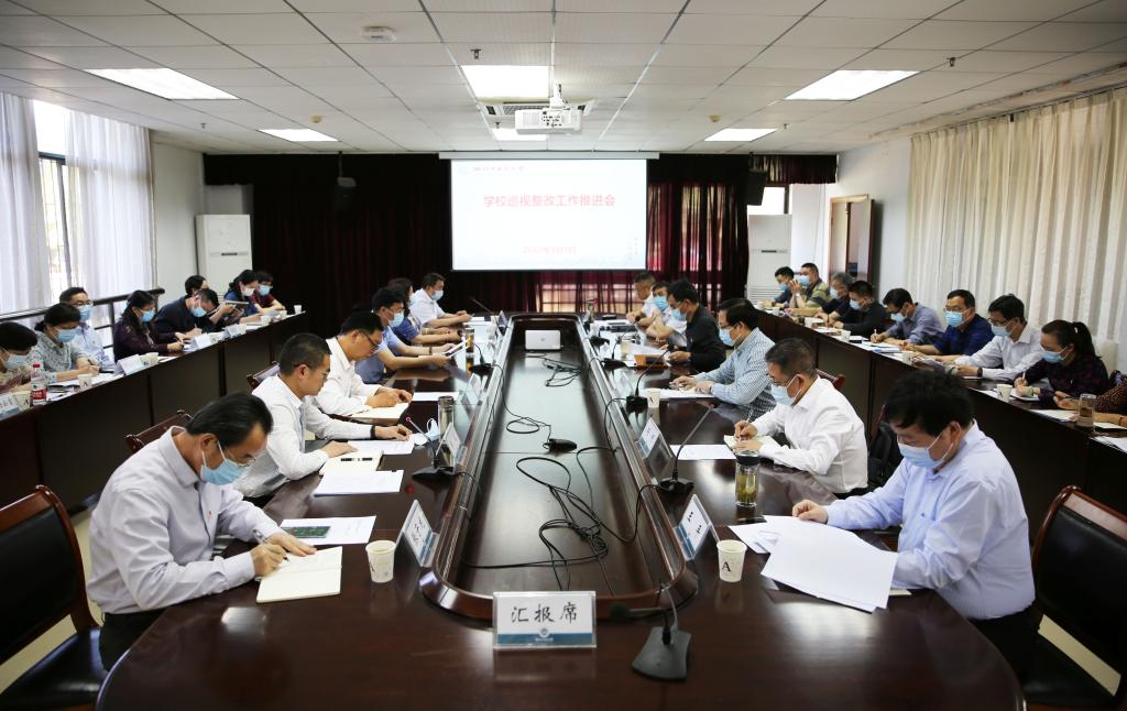 本网讯 为从严从实从细做好巡视整改“后半篇文章”,确保巡视整改工作按时保质保量完成,5月5日下午,学校巡视整改工作推进会在明德楼A座一楼会议室召开。学校巡视整改工作领导小组成员及相关职能部门负责人参加了会议。