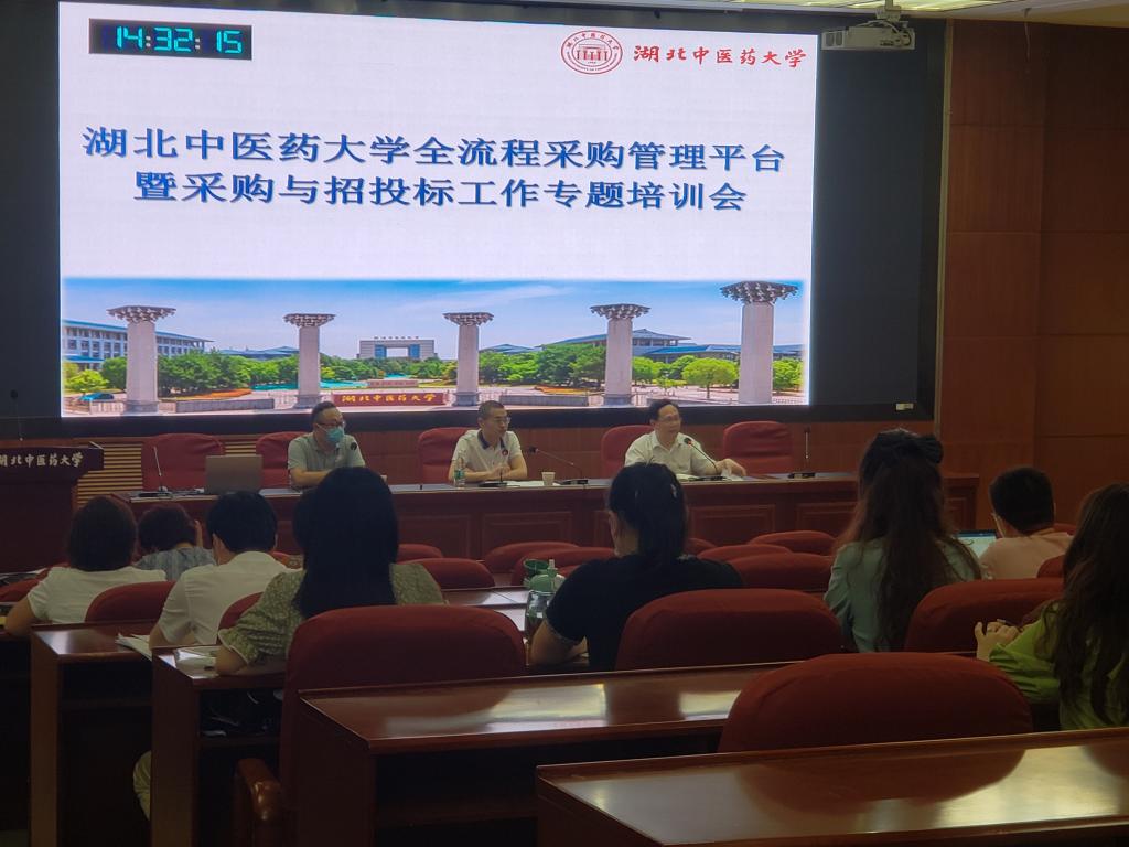 采购与招投标办公室工作人员就出台的《湖北中医药大学统一采购限额以下项目分散采购管理办法(修订)》《湖北中医药大学关于贯彻落实<政府采购需求管理办法>的通知》进行了解读。王凡、席鹏飞就全流程采购管理平台体系构架及相关功能进行演示,并开展了全流程采购管理平台的操作培训。