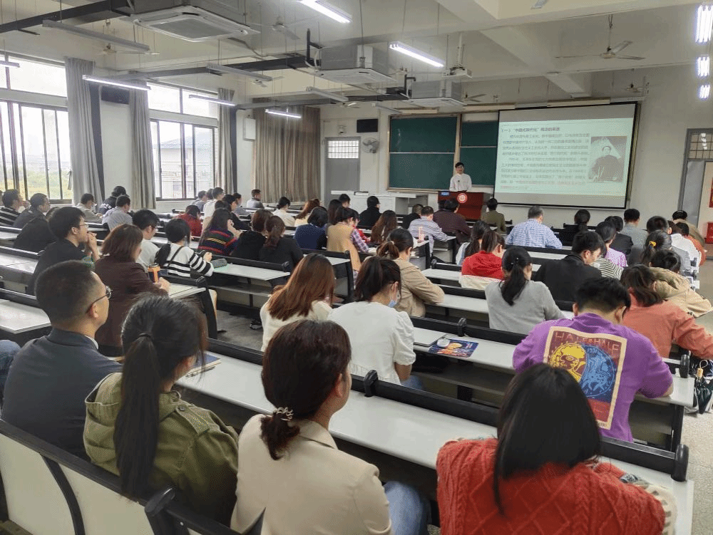 学生中药第二党支部书记陈乔以“正确理解和大力推进中国式现代化”为题,从“中国式现代化”概念的来源、“中国式现代化”概念的提出、“中国式现代化”的中国特色及以中国式现代化推动高校各项事业高质量发展等七个方面进行了讲述,讲座内容丰富,既有理论阐述又有实践指导。