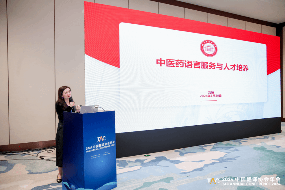当天下午,在“智医通译”医学语言服务主题论坛上,刘娅教授作了题为“中医药语言服务与人才培养”的主旨发言,呼吁加大“外语+”“+外语”等复合型翻译人才培养力度,实现以翻译为桥,共促东西方医学交流互鉴,以中医化人,借中医药扩大中医文化朋友圈,以中医药翻译为公共接口,融通中西方文化中的特色概念与范畴,引发现场学界同仁的强烈共鸣。