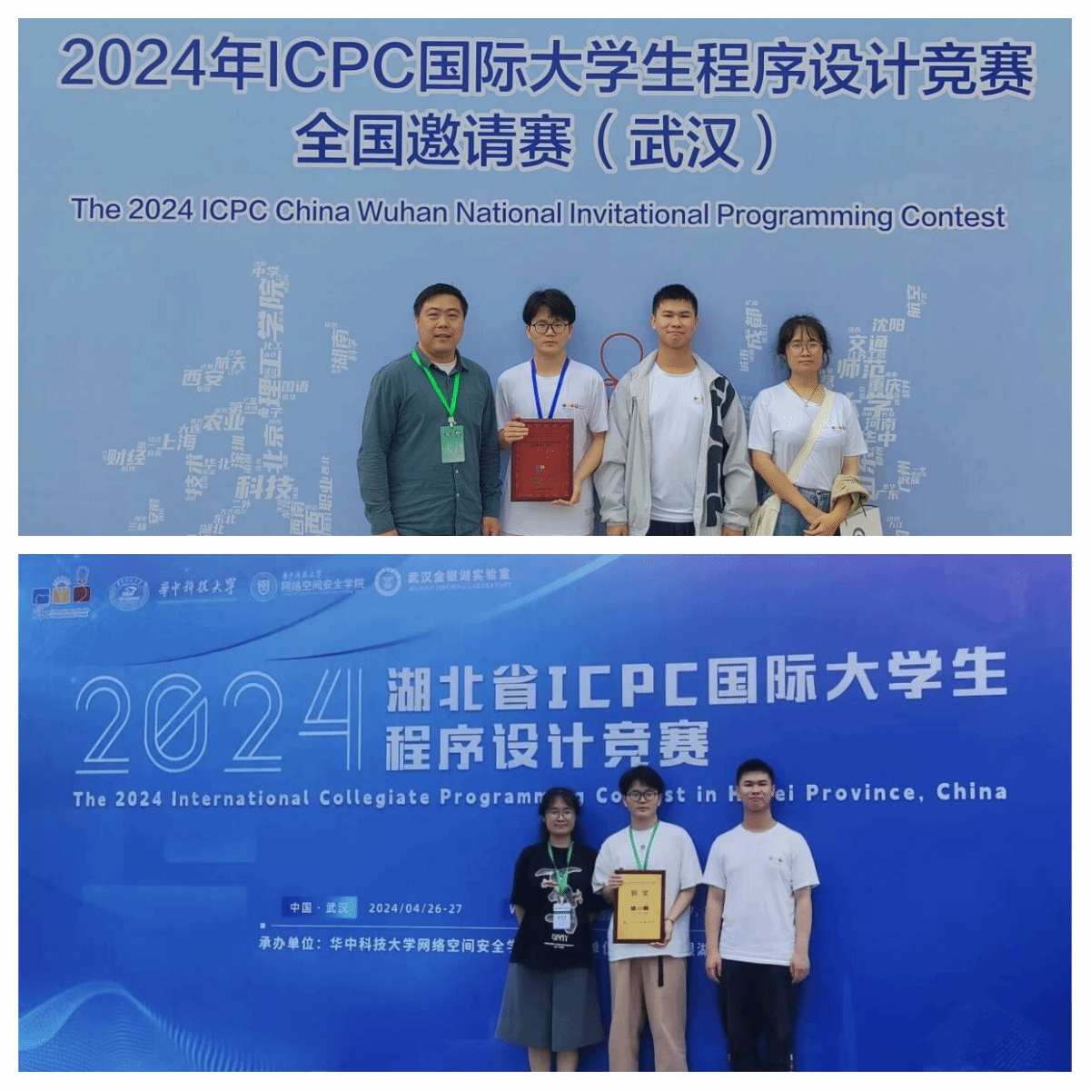 本网讯 近日,2024年ICPC国际大学生程序设计竞赛全国邀请赛(武汉)在武汉大学举行,来自上海交通大学、复旦大学、电子科技大学、华中科技大学等全国195所高校的221支队伍参加比赛。由我校信息工程学院肖瑞老师指导、胡芳老师组织,2021级、2022级医学信息工程专业本科生方沁鸿、李梓恒、陶信予组建的“阿波和IT”科研创新团队——ACM竞赛组“WorldExecuteUs”代表学校参赛。经过5个小时激烈角逐,以解出3题的成绩,依靠罚时优势获得铜牌,实现我校本科生在该类赛事中的突破。