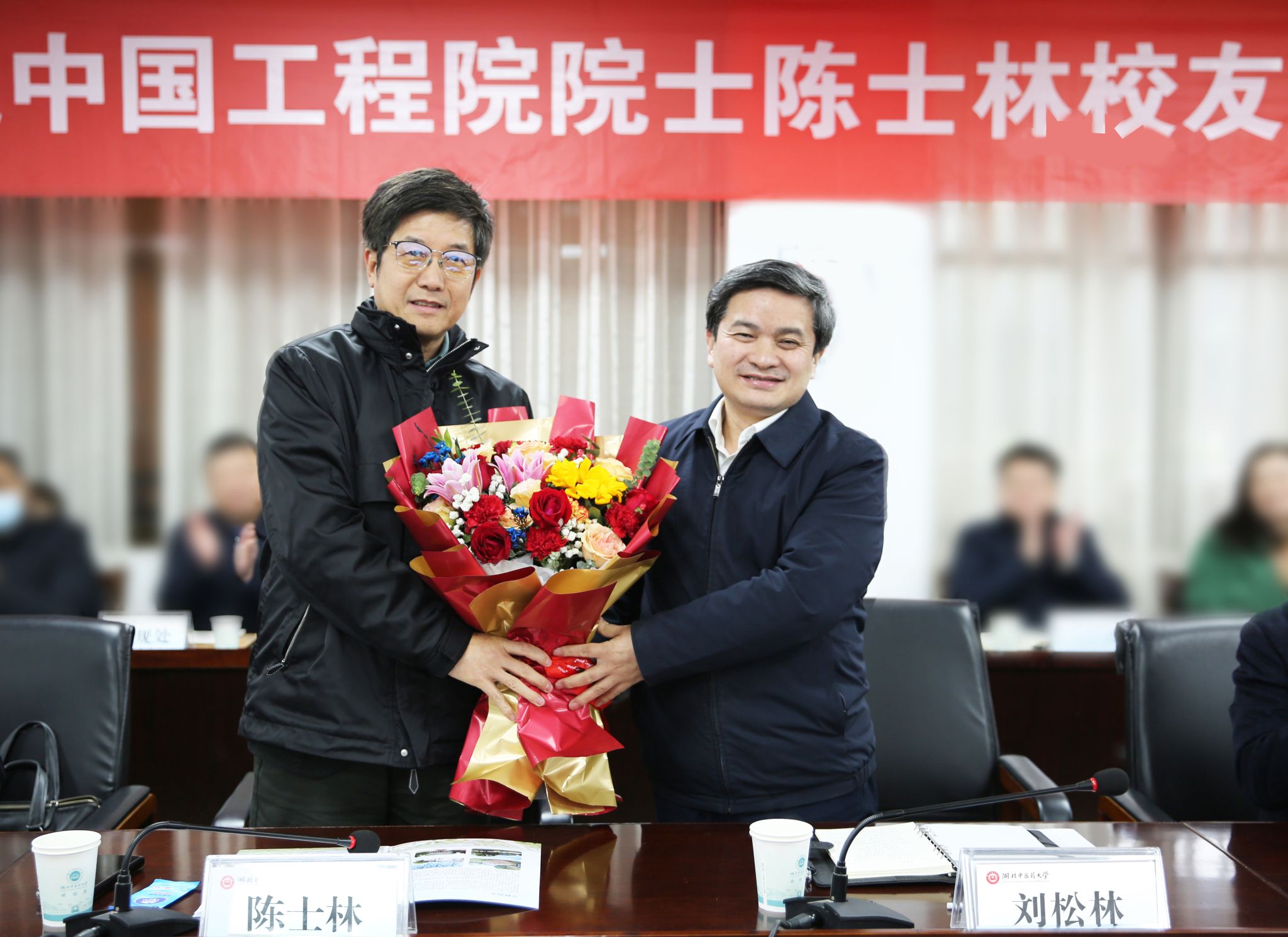 座谈会上,校长刘松林向陈士林院士献花。现场响起热烈掌声。