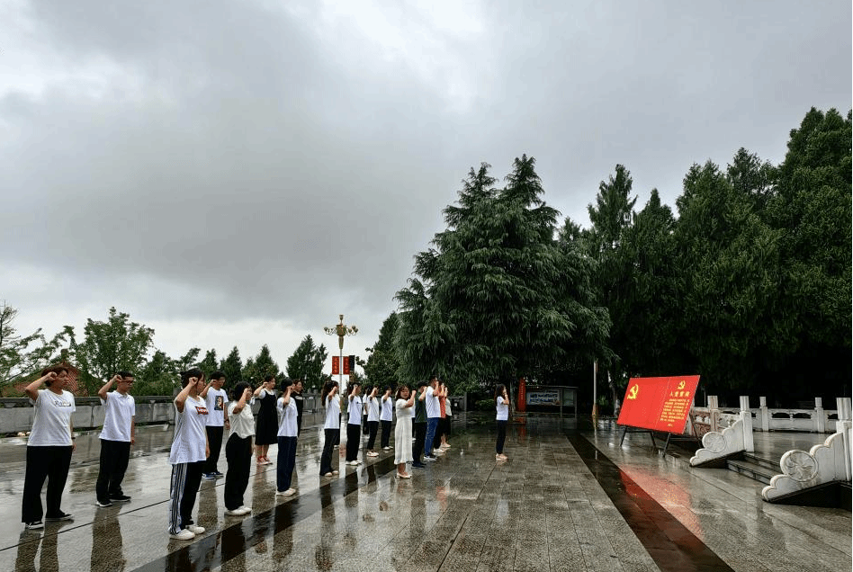 6月29日下午,外国语学院师生一行来到全国爱国主义教育示范基地、郧阳革命烈士陵园开展“学习党史重温初心”庆祝中国共产党成立102周年活动。在革命烈士陵园纪念碑前,全体师生党员庄严地举起右手,面对鲜红的党旗,重温入党誓词。