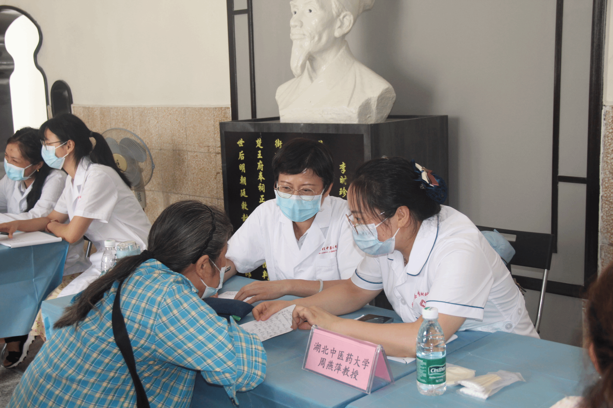 蕲州镇玄妙观位于古蕲州城麒麟山东麓,史书记载明嘉靖年间,李时珍在观内坐堂行医,造福乡里,深受乡民称颂。在这里,药学院师生一行开展专家义诊、健康咨询、中草药真伪辨识、中医养生功法教学等活动,吸引了当地居民积极参与。