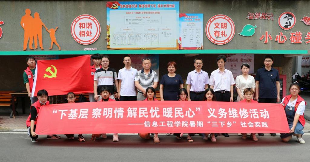 信息工程学院2022暑期“三下乡”社会实践活动以“喜迎二十大 永远跟党走 奋进新征程”为主题,开展了“中医药文化进校园 百年团史浸润童心”“追寻红色记忆 传承革命精神”“义务维修进社区 为民服务办实事”“实践信息化理念 服务基层医疗卫生”“寻访民间老中医 讲好中医药故事”“访企拓岗促就业 校企合作共育人”6个方面的专项行动,引导师生将国家使命、时代召唤、强国重任和自身成长成才紧密结合,在集体中成长、在参与中锻炼、在组织中凝聚、在行走中感悟,切实以优异成绩迎接党的二十大胜利召开。