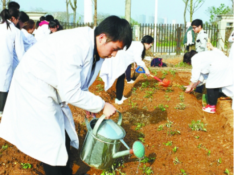 2016年,中药资源与开发专业师生已将药用植物园作为开放式课堂,开展中药材规范化种植研究,并亲手在园内种下一株株药用植物。