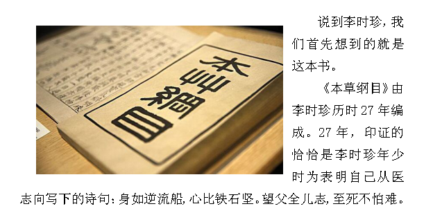 《本草纲目》共16部,52卷,约200多万字,记载有1892种药物,比前人著述增加了374种。从《本草纲目》问世至今,这本巨著的重要意义从未被否认过。她被国外学者誉为“中国之百科全书”。书序则由当时的文坛领袖王世贞所作。王世贞认为这部书的价值不可估量。他说,打开《本草纲目》,“如入金谷之园,种色夺目;如登龙君之宫,宝藏悉陈;如对冰壶之鉴,毛发可指数也。博而不繁,详而有要,综核究竟,直窥渊海,兹岂仅以医书观哉?实理性之精微,格物之通典,帝王之秘录,臣民之重宝”。