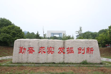 黄家湖校区校训石上镌刻的校训:勤奋、求实、发掘、创新,每个词都是李时珍从医生涯的真实写照。