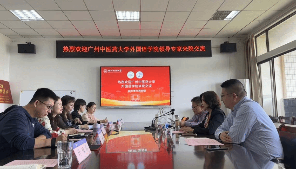 本网讯 10月30日,广州中医药大学外国语学院院长苏红、王银泉教授一行来校调研交流。外国语学院领导班子、相关工作人员、辅导员参加调研座谈。