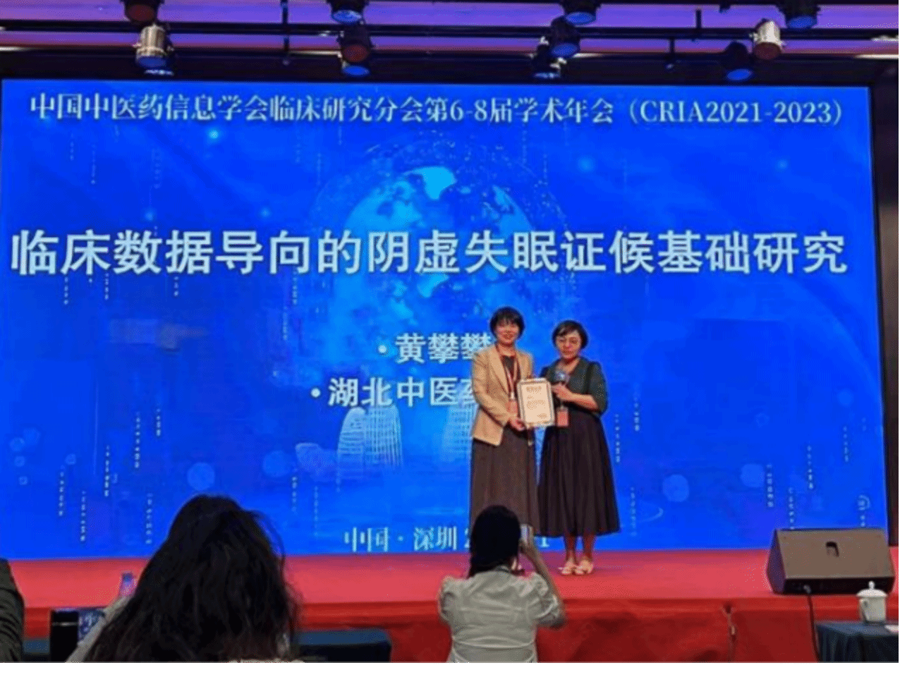 黄攀攀教授在会上作了题为“临床数据导向的阴虚失眠证候基础研究”学术报告,分享了通过数据建模、算法优化等数智结合手段挖掘临床失眠病案,并借助分子生物学、影像学、化学遗传学等多学科交叉方法,验证方证对应的“阴虚内热”证候基础,引起专家学者共鸣。报告主持人、武汉科技大学徐雪教授认为,该研究将临床治疗失眠数据与人工智能算法优化应用有机结合,精准分析出中药复方内有效中药成分,夯实了其“滋阴清热、养心安神”疗效的科学证据,为精准医疗提供新的思路和方法。在随后召开的“中医现代化的路径与选择”圆桌会议中,黄攀攀教授围绕促进中医药“走出去”“落下地”,提出要基于“望闻问切”四诊多模态数据的相互融合,“天人合一”多应用场景的证候模型迁移,“辨证论治”多交互模式的人机协同,把中医的阴阳、五行、藏象理论有机融合到多领域建模、多任务学习中,推断脏腑功能状态,预测疾病转归,实现人工智能与中医的有效关联,促进新知识体系的产生。