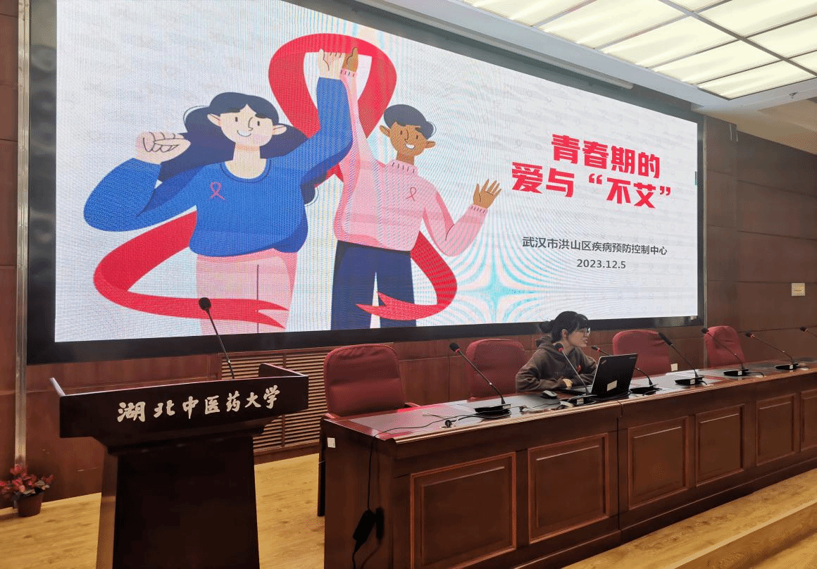 本网讯 为增强学生艾滋病防治意识和自我保护能力,近日,黄家湖医院联合学生工作部、洪山区疾控中心举办第36届“世界艾滋病日”健康教育讲座。洪山区疾控中心艾防科张晨莹老师来校,在黄家湖校区图书馆学术报告厅作题为“青春期的爱与不‘艾’”的讲座。学生代表140余人聆听讲座。
