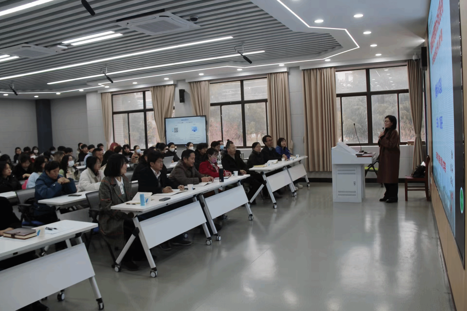 本网讯 11月30日,学校在黄家湖校区药学院Y102智慧教室举办教育教学大讨论系列第十期教学示范公开课。活动由教务处主办、医学人文学院承办。校党委常委曹继刚,教务处相关负责人,医学人文学院领导班子、师生代表等线上线下共计200余人参加活动。