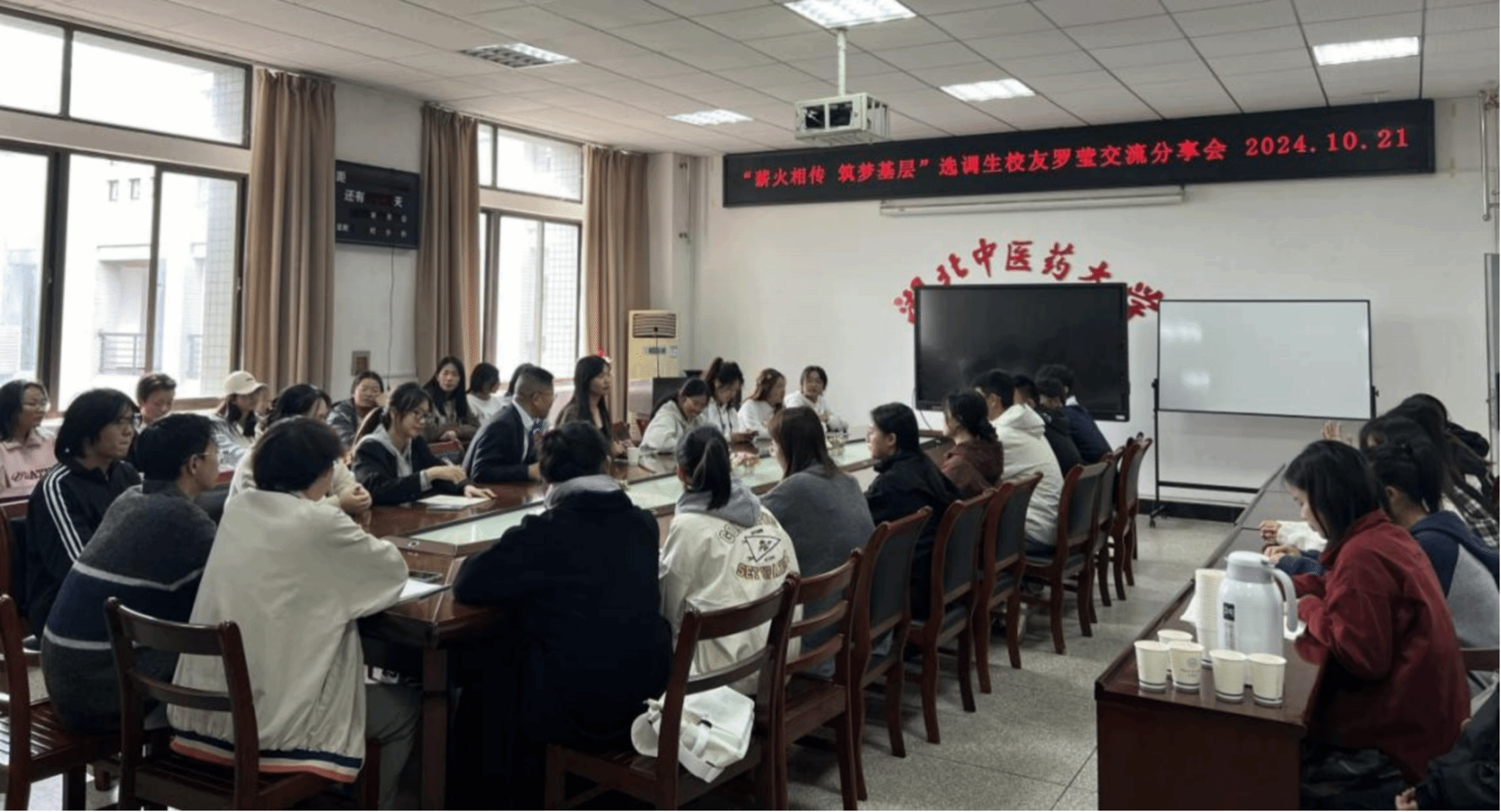 会议伊始,药学院分管学生工作负责人对罗莹的到来表示欢迎。他表示,此次经验分享交流会是一次难得的学习机会,希望同学们以此为契机,深入了解基层工作内容,早日规划自己的职业方向。