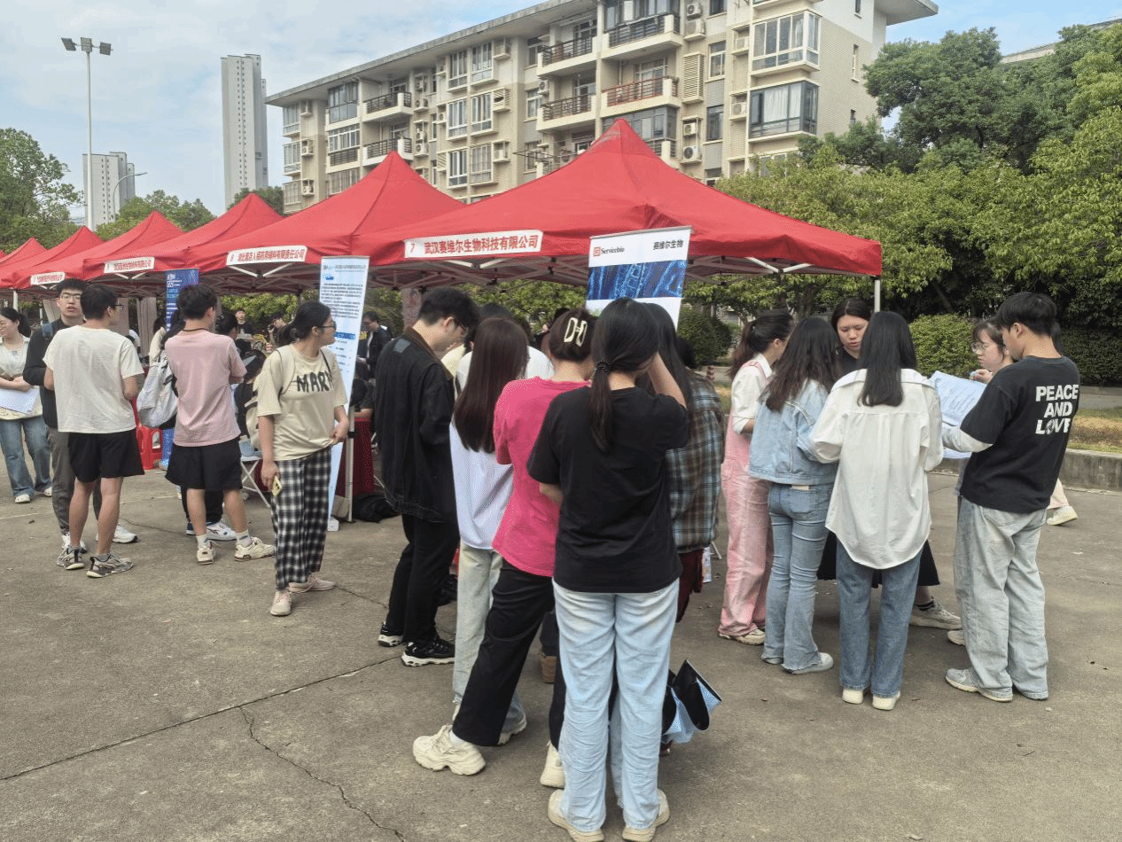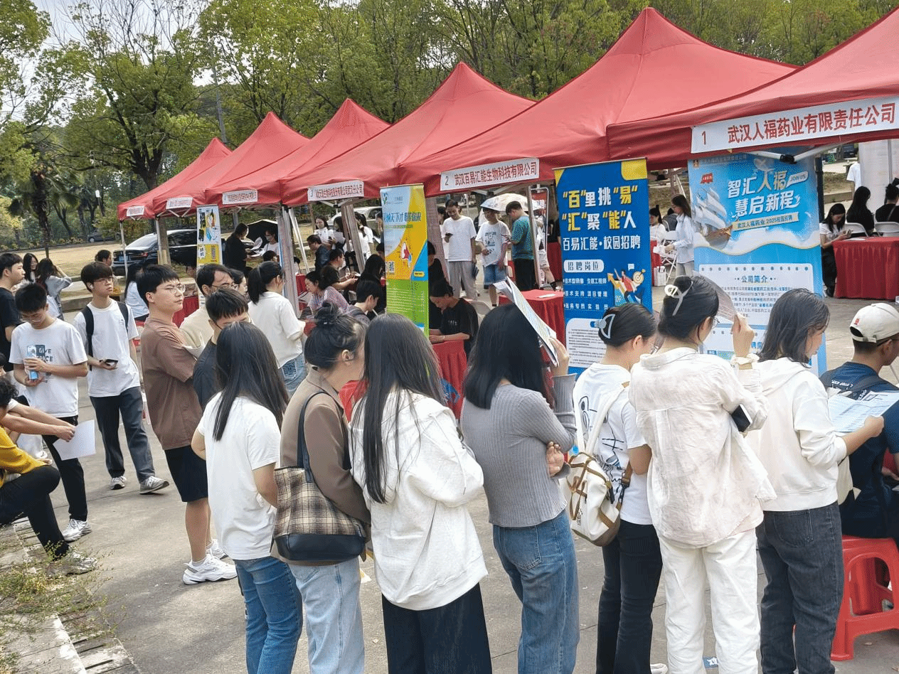 本网讯 10月12日,我校联合武汉东湖新技术开发区管理委员会在黄家湖校区北区篮球场举办了武汉光谷生物城专场招聘会。