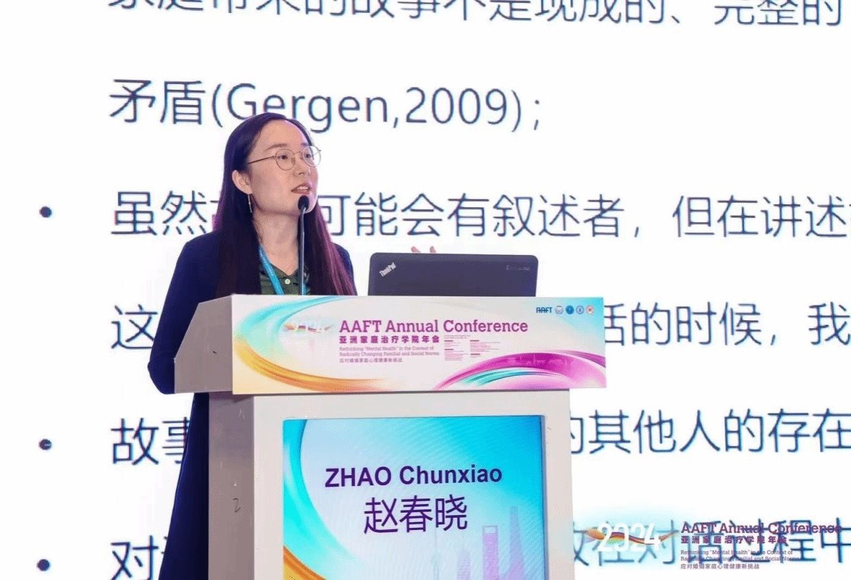 本网讯 10月25日至27日,第九届亚洲家庭治疗学院大会在上海召开。本次大会主题为“应对婚姻家庭心理健康新挑战”,由中国心理卫生协会婚姻家庭心理健康促进专业委员会、亚洲家庭治疗学院(Asian Academy of Family Therapy,AAFT)联合主办,同济大学附属精神卫生中心承办。我校医学人文学院赵春晓副教授参会并作了题为“家庭治疗中的对话与有效训练”的工作坊报告。