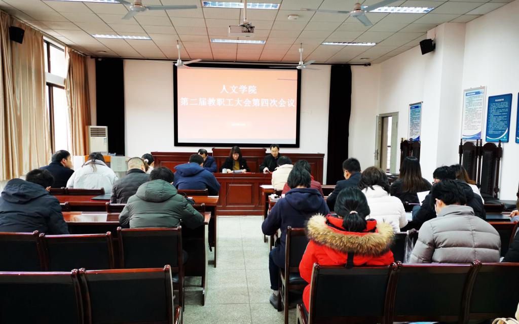 本网讯 2021年12月31日,人文学院第二届教职工大会第四次会议在学院模拟法庭会议室召开。学院领导班子成员、全体教职工参加会议。