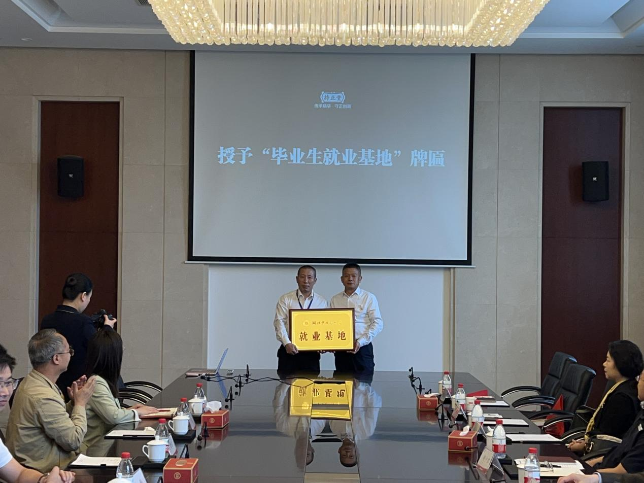 校纪委书记、监察专员胡少萍向劲牌持正堂药业有限公司授予“湖北中医药大学就业基地”牌匾