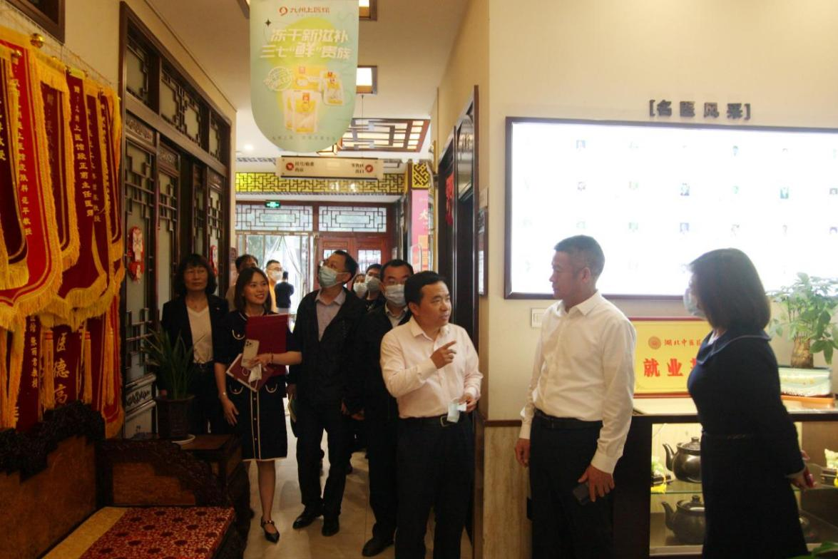 胡少萍一行在陈蒙蒙陪同下,实地参观了叶开泰中医药文化创意产业园、健民中医门诊部(武汉)有限公司等地。