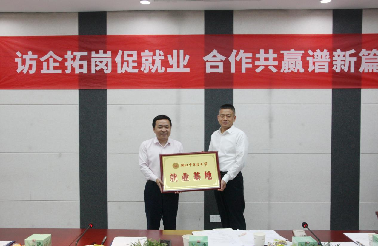 校纪委书记、监察专员胡少萍向九州通九信中药集团颁授“湖北中医药大学就业基地”牌匾