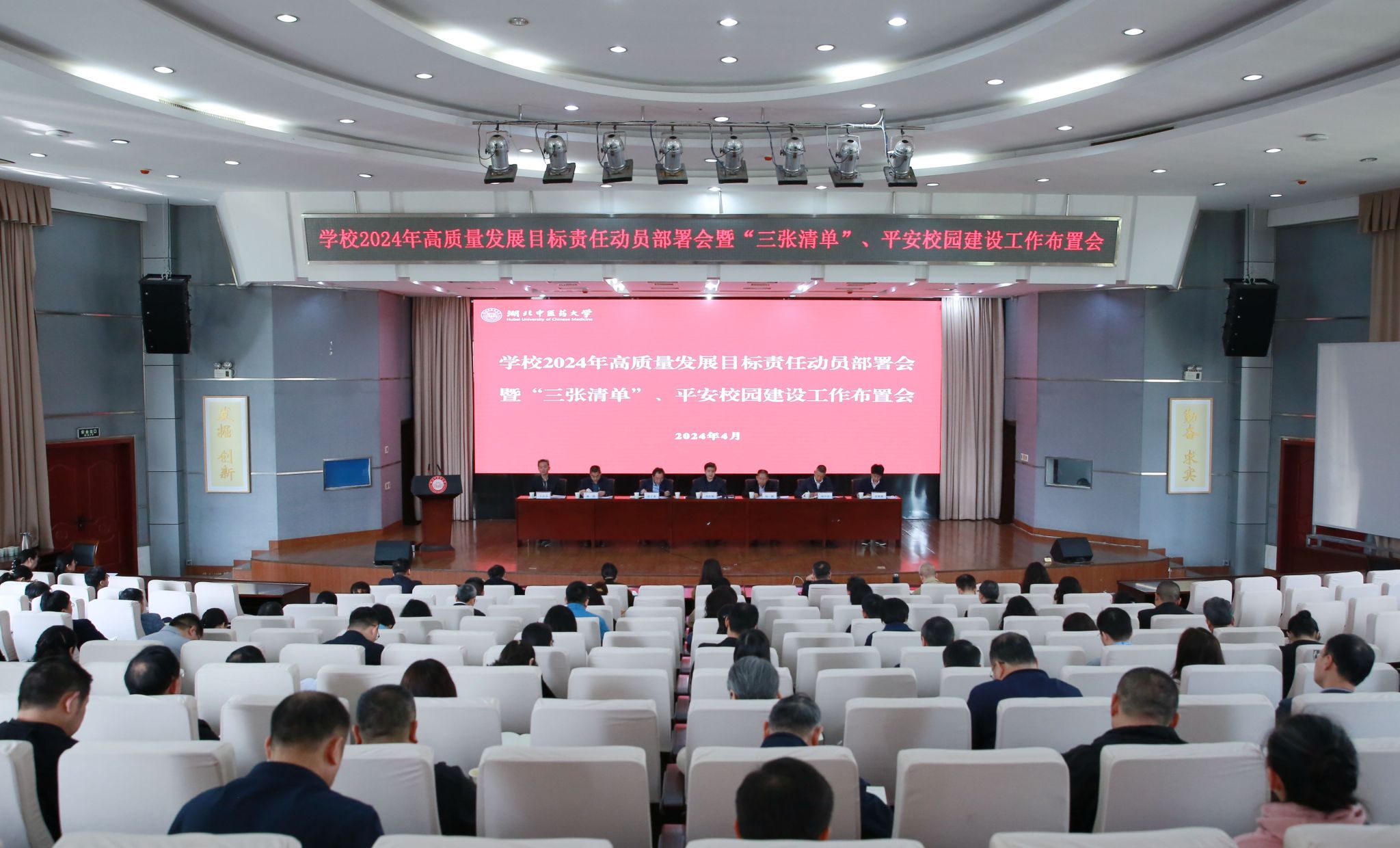 本网讯 4月3日,学校在黄家湖校区明德楼学术报告厅举行2024年高质量发展目标责任动员部署会暨“三张清单”、平安校园建设工作布置会。在校校领导,中层领导干部参加会议。校长刘松林作总结讲话。校党委副书记张子龙主持会议。