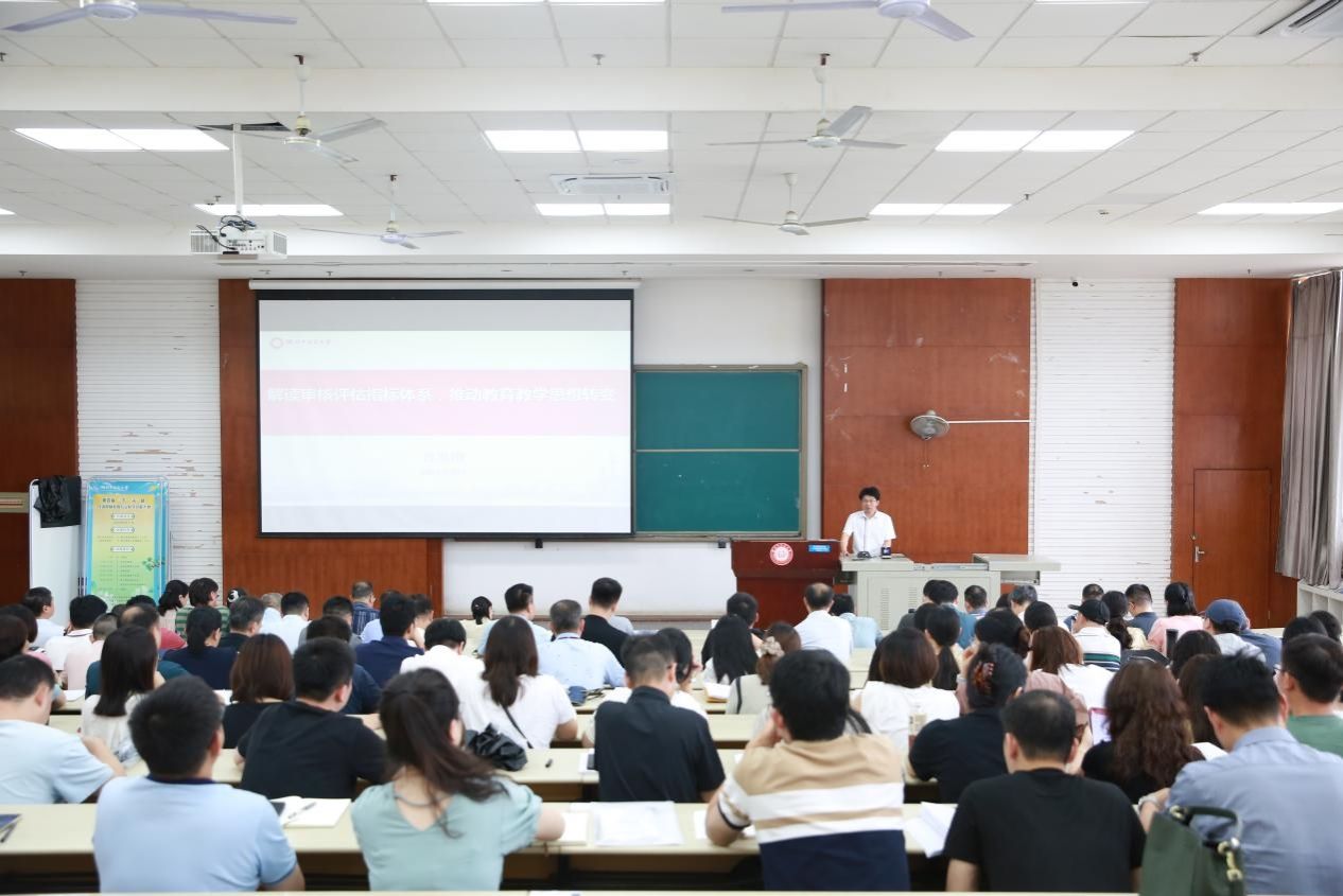 曹继刚以“解读审核评估指标体系,推动教育教学思想转变”为题,开展本科教育教学审核评估知识专题培训,重点从学习理解新一轮审核评估精髓要义、新一轮审核评估工作流程、审核评估指标考察重点、审核评估工作要求等方面进行了讲解。他指出,新一轮审核评估工作遵循坚持立德树人、坚持推进改革、坚持分类指导、坚持问题导向、坚持方法创新等五个原则,倡导“质量共同体”理念,围绕本科教育教学质量共商共研、同题共答,凸显评估的“指挥棒”作用,靶向服务高校高质量发展。要准确把握审核指标的内涵要义,进一步高度重视,提高认识;精心组织,全面落实;通力协作,主动沟通;压实责任,注重实效,全面做好迎接本科教育教学审核评估各项工作,强化“学生中心、产出导向、持续改进”,推动学校本科教育教学质量再上新高度。