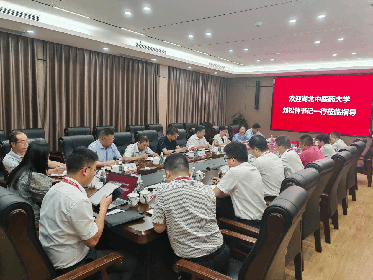 本网讯 7月17日,校党委书记、校长刘松林,副校长杨波一行赴国药集团中联药业有限公司就进一步深化校企合作开展座谈交流。中国中药控股有限公司副总裁、国药集团中联药业有限公司董事长黄掌欣,国药集团中联药业有限公司总经理、党委副书记李定发,国药集团中联药业有限公司党委书记、工会主席王伟等出席座谈会,学校办公室、学生工作部、科发院、药学院、继续教育学院、附属医院药事部负责人参加活动。