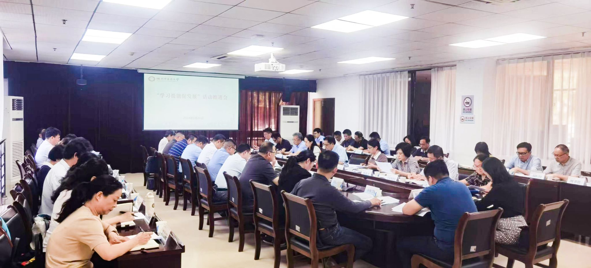 本网讯 9月24日,学校在黄家湖校区明德楼A座一楼会议室召开“学习提能促发展”活动推进会。副校长刘建忠主持会议。二级单位党组织负责人,各职能部门、直属单位负责人参加会议。