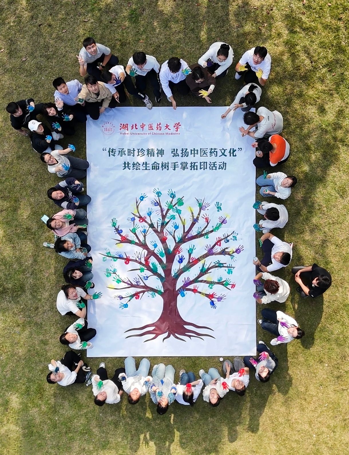 祭拜仪式后,时珍国药班全体同学开展“传承时珍精神 弘扬中医药文化”共绘生命树手掌拓印活动。他们一同将准备好的染料涂抹在手掌上,向空白手印布上拓印,最后形成一幅枝繁叶茂的文化大树,印刻着中医药学子坚定的中医药自信,激励广大青年传承时珍精神,弘扬中医药文化。