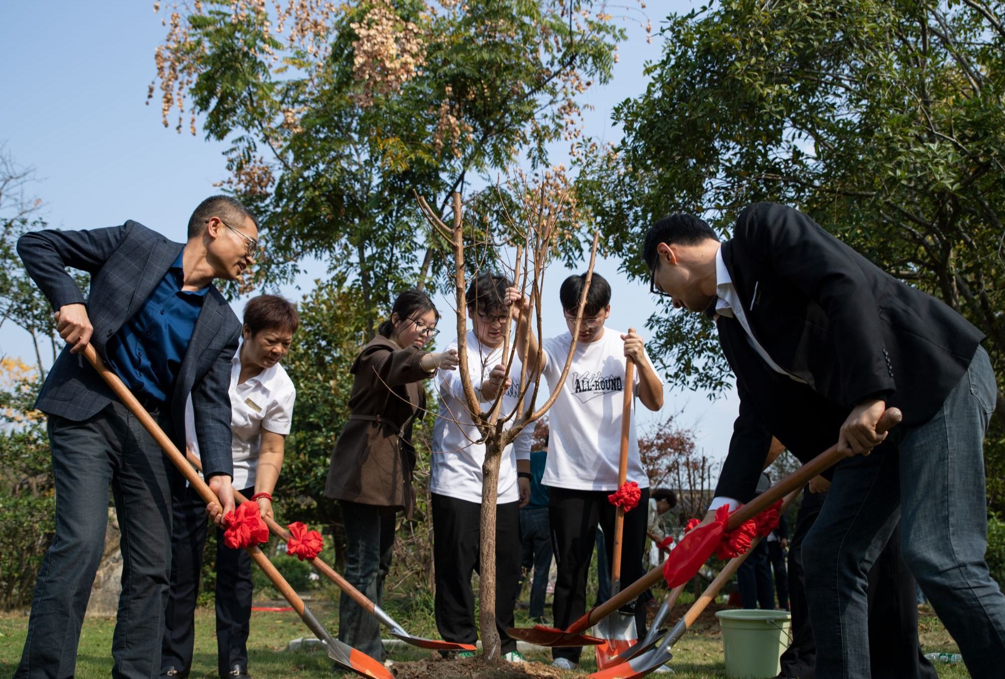 随后,师生代表在李时珍纪念馆园区开展“‘杏’好有你 ‘医’脉相传”公益植树劳动教育实践活动。同学们热情高涨,干劲十足,刨坑、栽苗、填土、浇水,齐心协力,分工协作。经过大家共同努力,10棵杏树昂然挺立,寓意中医药事业兴旺发达、繁荣昌盛。大家在体验劳动乐趣的同时,为美化环境注入青春力量。
