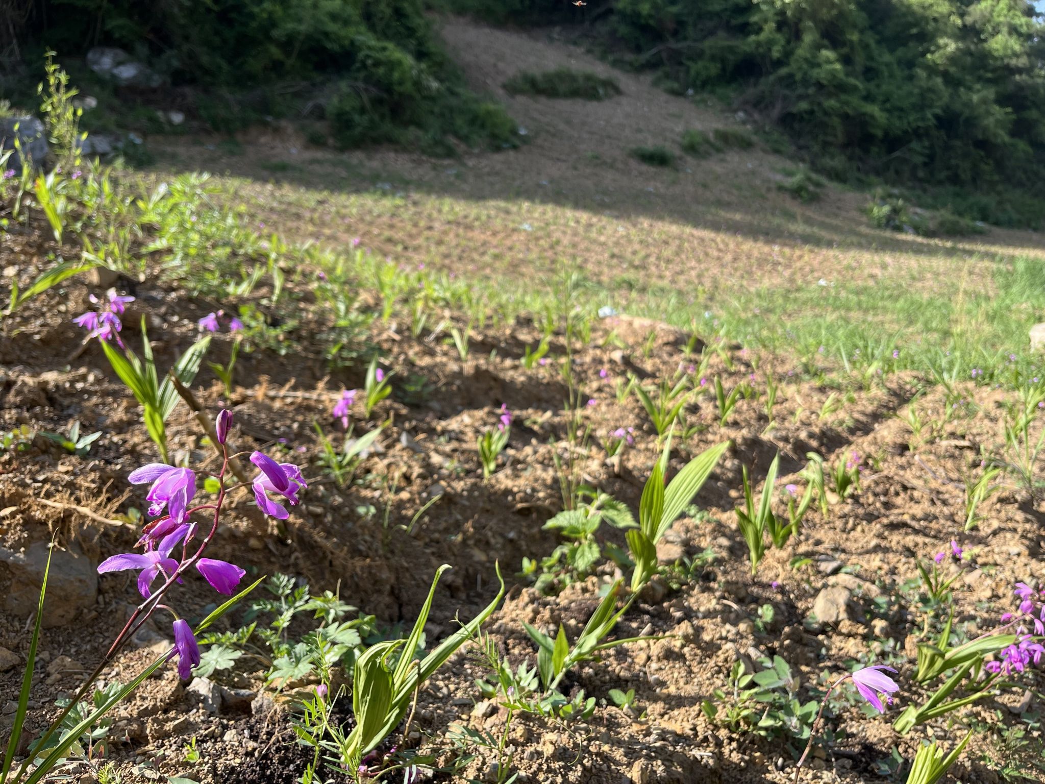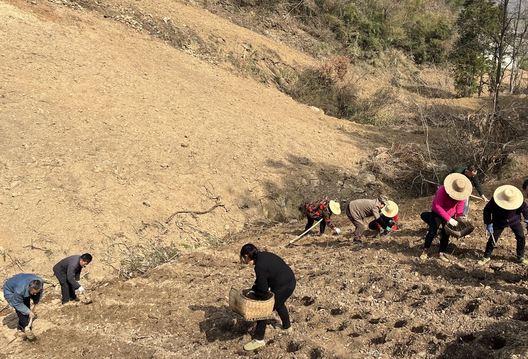 本网讯 5月14日一大早,门古寺镇狮子岩村村委会楼前,学校驻村工作队便与村支书饶飞一起出发前往四组山场今年新开发的300余亩林地。越过山路,放眼望去,一垄垄黄精绿意盎然,一片片白及生机勃发,农户们正在中药材种植区劳作,一派繁忙景象。开荒培土、耕地堆垄、栽苗灌溉、施肥除草、修枝打花……大家分工协作、配合默契、手法娴熟,俨然已经成为中药材种植的“老手”。
