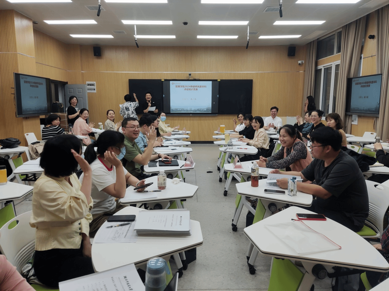本网讯 为进一步做好本科教育教学审核评估各项工作,增强学院教职工迎评促建的责任意识,5月30日,管理学院在黄家湖校区文华楼MPA教室举办“智慧对决  知识大比拼”本科教育教学审核评估知识竞赛。学院全体教职工参加比赛。