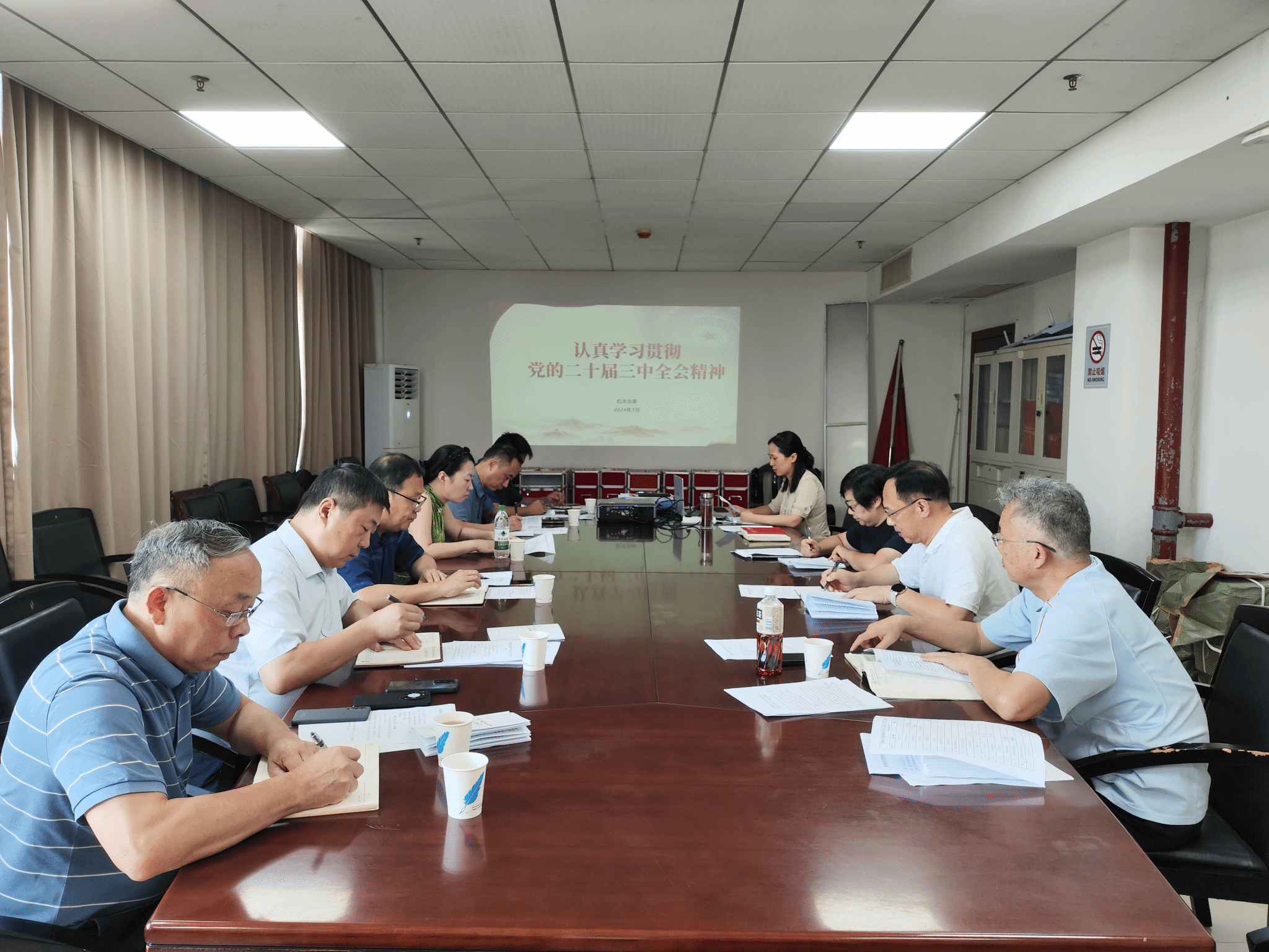 本网讯 7月25日,直属机关党委在黄家湖校区明德楼四楼会议室召开党委理论学习中心组(扩大)会议,专题学习党的二十届三中全会精神。直属机关党委委员,党支部书记、副书记参加会议。会议由党委组织部、直属机关党委负责人主持。