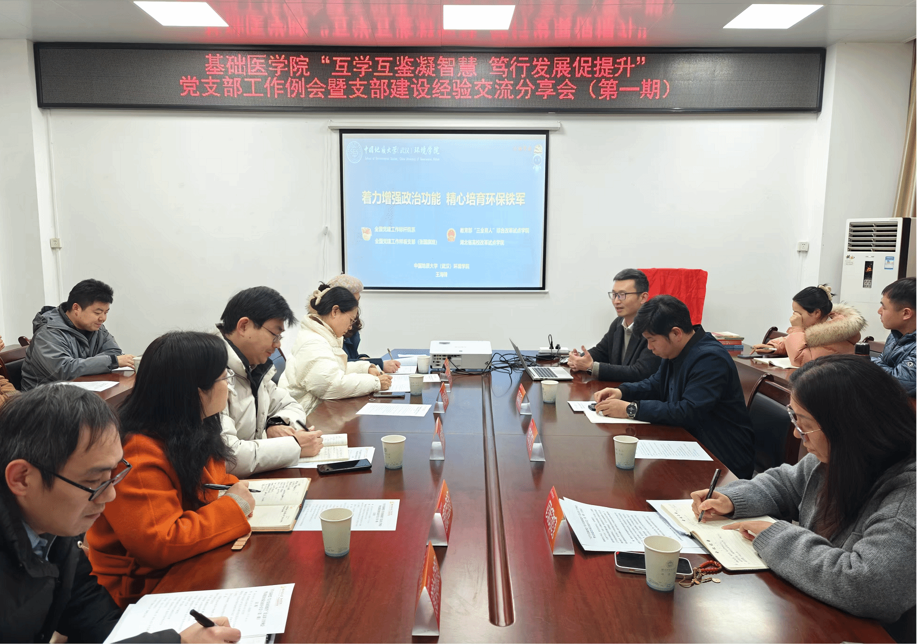 本网讯 12月19日,基础医学院在黄家湖校区杏林阁举行首期“互学互鉴凝智慧 笃行发展促提升”党支部工作例会暨支部建设经验交流分享会。“全国党建工作标杆院系”培育创建单位、教育部“三全育人”综合改革试点学院、中国地质大学(武汉)环境学院党委副书记王海锋担任特邀嘉宾,基础医学院党政领导班子成员、党支部书记、支部委员参加会议。会议由基础医学院党委负责人主持。