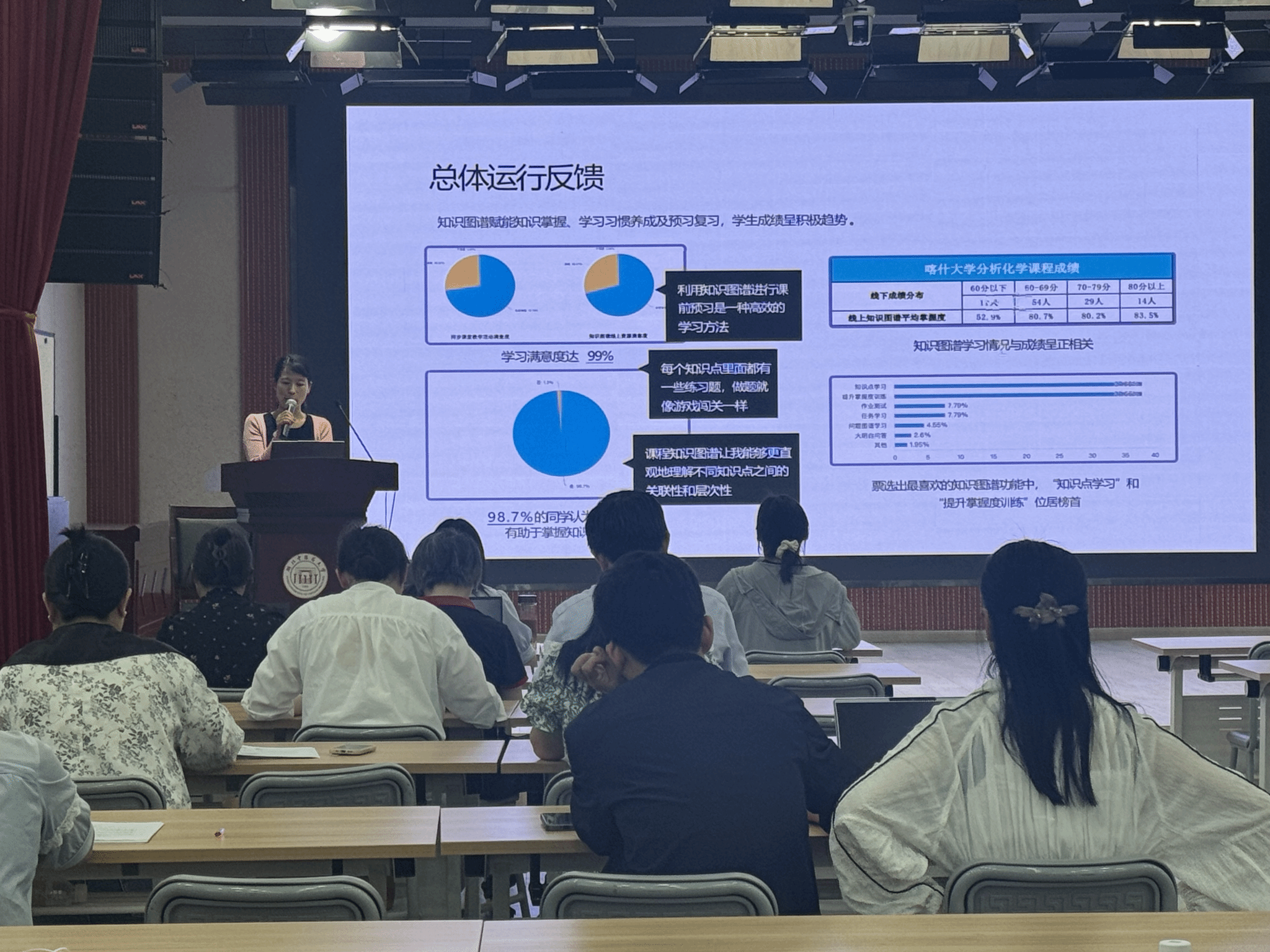 本次活动由智慧树网提供专业支持,聚焦如何通过AI赋能教学并开展智慧课程运行,提升教师数字化素养。智慧树网专业技术人员解析了智慧课程场景化教学运用案例,演示了智慧课程教学空间实践操作,带领教师进行平台模拟。现场,教师围绕智慧课程融入教学,让教学思路与AI应用场景碰撞火花展开充分研讨。