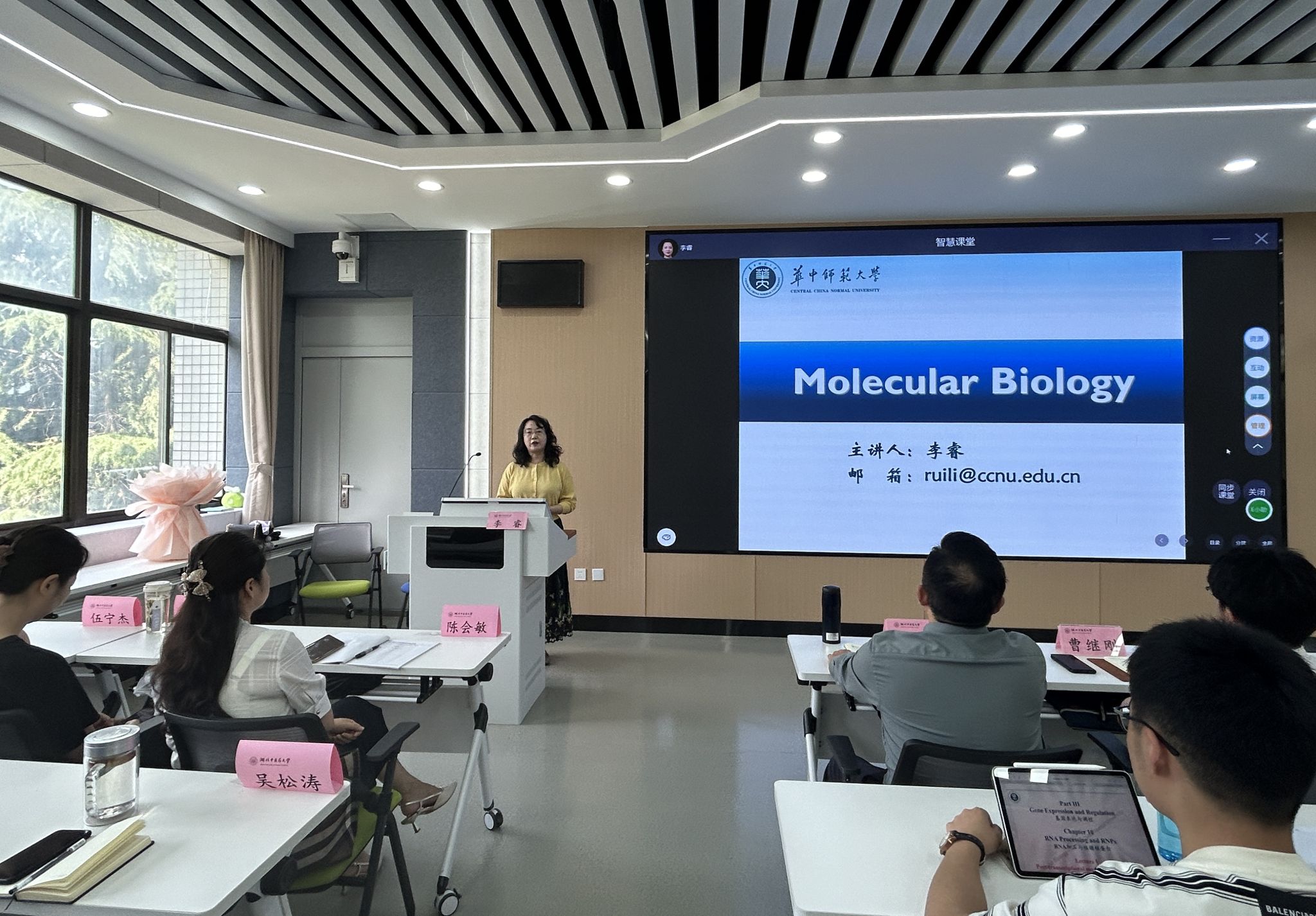 李睿教授以“真核转录后修饰”为主要内容,开展智慧课堂公开展示。课堂采用双语教学,课前发布学习问题让学生预习,课堂上开展前测了解学生预习情况,通过动画视频、前沿进展、小组讨论等方式开展启发式教学,帮助学生认识真核转录后修饰的重要性、过程及转录“加帽”“加尾”的生理意义,并围绕CTD作用机制开展课程思政,强调团结协作的重要性。整个课程灵活运用智慧教学手段,通过学习通开展选人、测验、分组讨论等,引导学生深度学习,对我校教师教学创新具有重要启发意义。