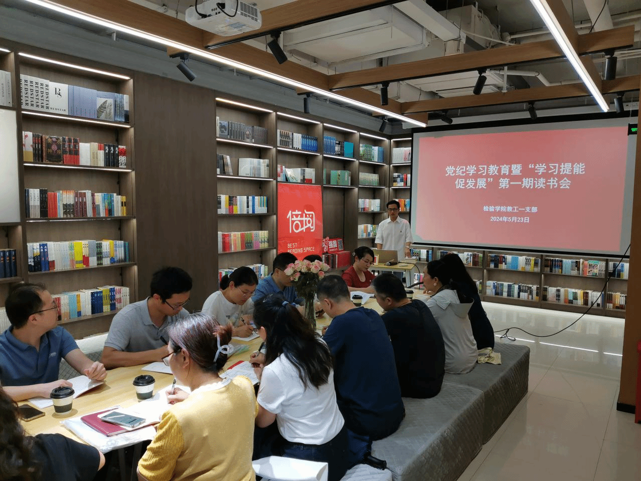 本网讯  5月23日,检验学院教工第一党支部全体党员在黄家湖校区图书馆倍阅书店开展“学习提能促发展”读书分享会。检验学院党委负责人参加活动,教工第一党支部书记柳叶副教授主持读活动。