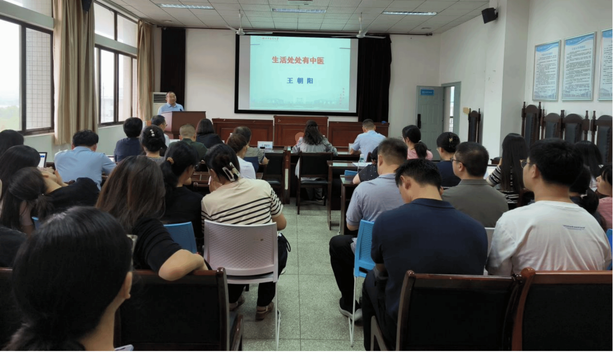 随后,王朝阳教授以中医药文化传承创新、我们身边的中医药为导入,通过鲜活的史实和案例,阐释了中医药是中国古代科学的瑰宝,号召大家要增强中医药文化自信,加强中医药文化传播,以中医药文化涵养新时代青年学生。王朝阳教授还从衣食住行、民俗文化等方面着手,结合饮食调整、运动锻炼、生活起居等,详细讲解了中医养生与日常生活的紧密联系,给出了科学实用的养生建议。