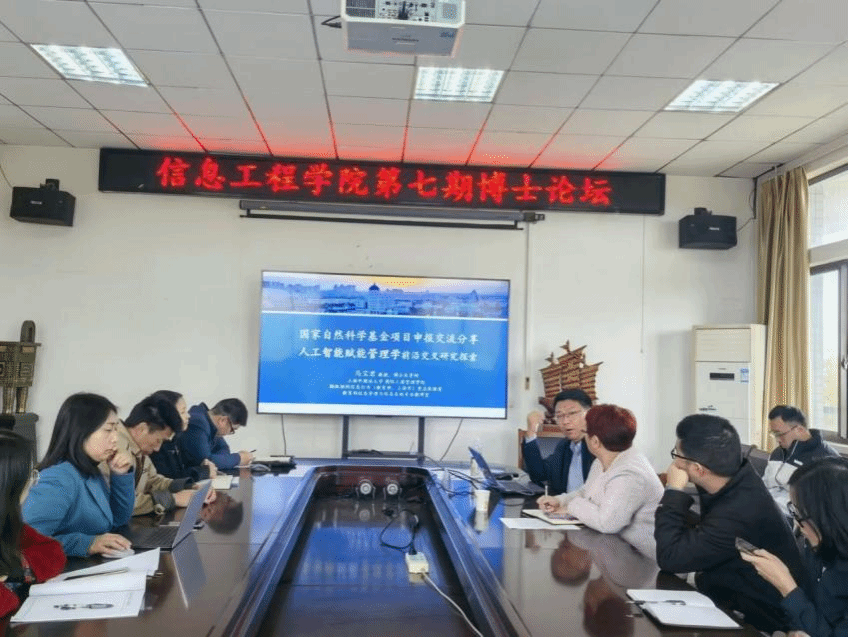 本网讯 11月20日,上海外国语大学马宝君教授做客信息工程学院第七期博士论坛,在黄家湖校区思远楼为师生作题为“国家自然基金项目申报交流分享暨人工智能赋能管理学前沿交叉研究探索”的学术报告。报告由信息工程学院负责人主持,信息工程学院师生代表聆听报告。