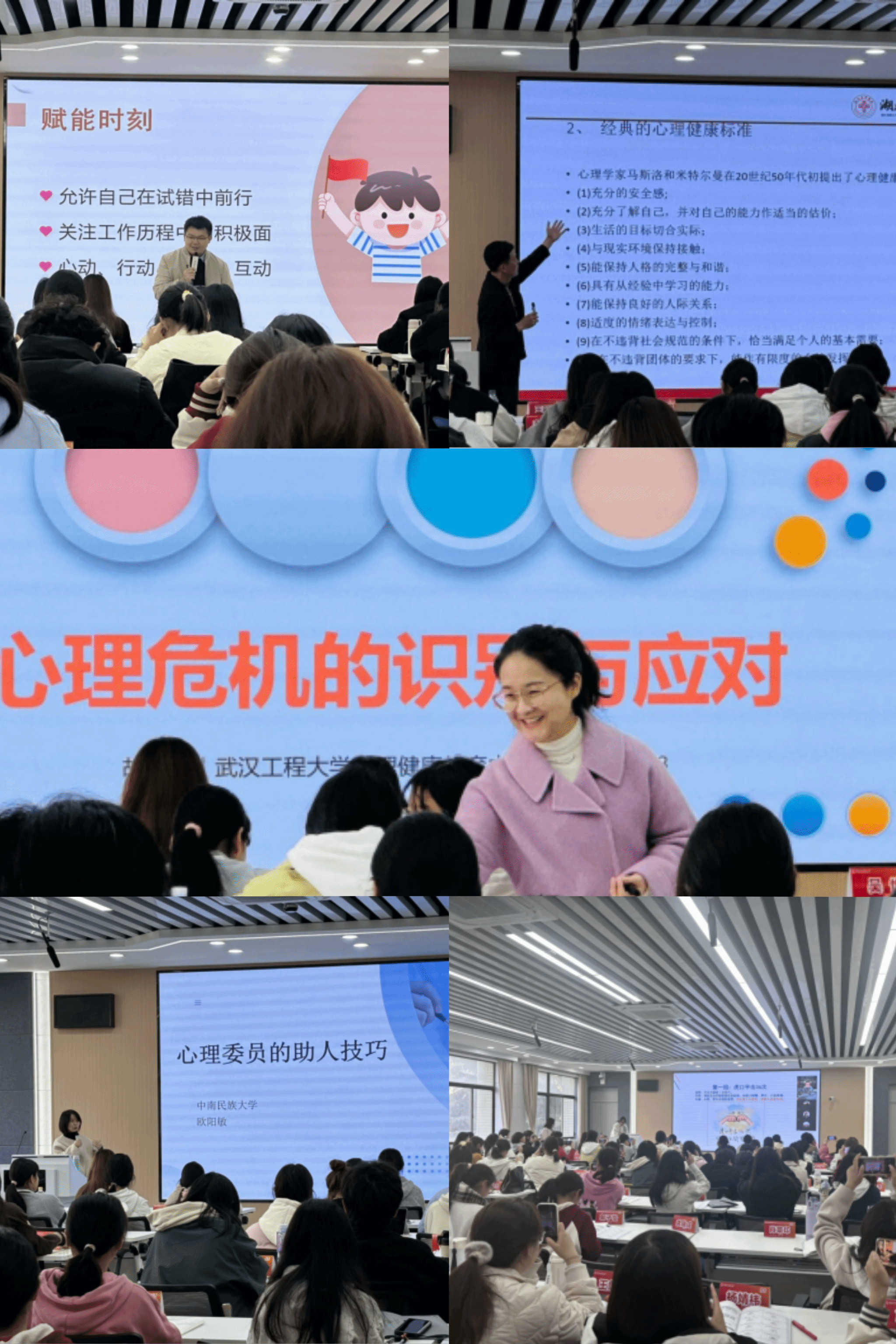 培训邀请福建中医药大学心理中心主任、教育部高等学校心理健康教育专家指导委员会委员丁闽江,以及来自中南财经政法大学、中南民族大学、武汉工程大学、我校附属医院等单位专家,分别开展了主题为“心理委员职责和朋辈工作”“心理主题班会策划与开展”、“心理委员助人技巧”“大学生心理危机识别与干预技巧”“常见精神疾病的识别”的讲座。讲座同步进行线上直播,全体宿舍联络员集中进行线上学习。