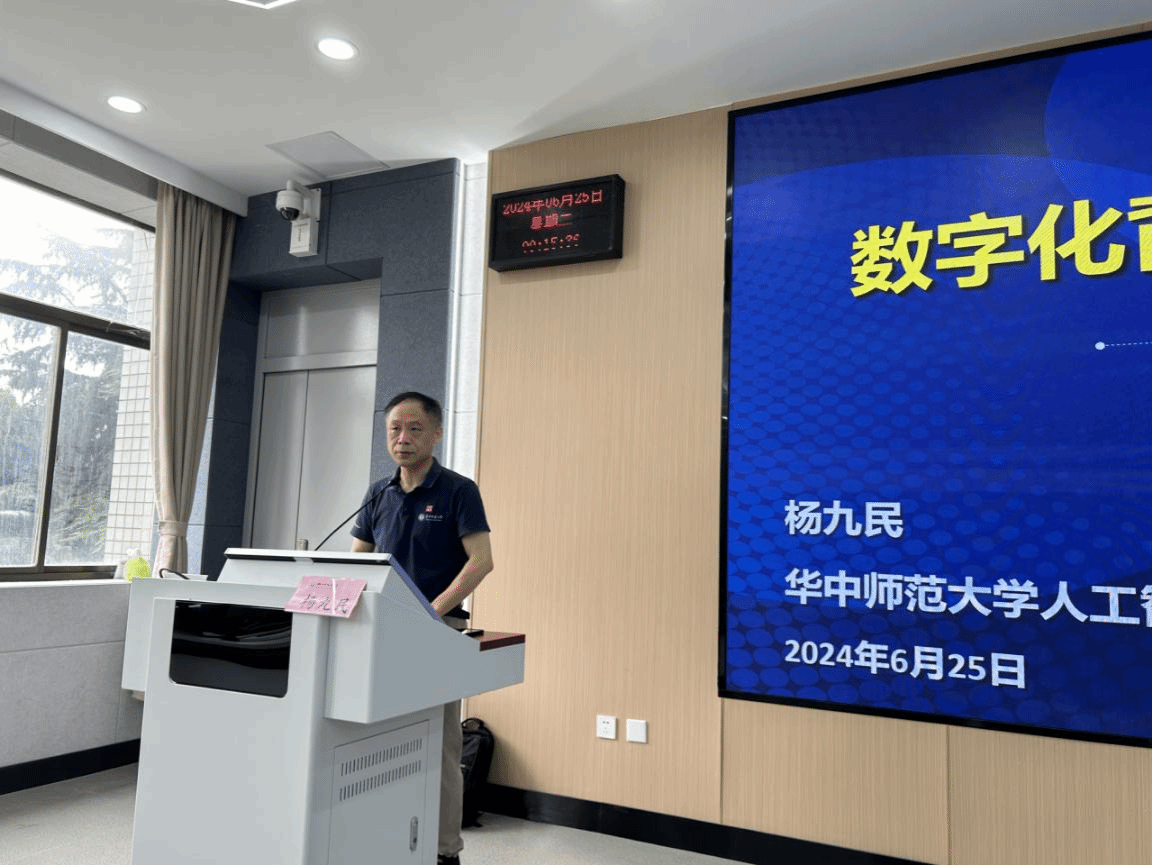 本网讯 6月25日,学校在黄家湖校区本草苑智慧教室Y102举行教师数字素养系列培训第二期培训活动,特邀华中师范大学杨九民教授担任主讲嘉宾。活动由教师发展中心负责人主持,全校各学院教师代表参加活动。