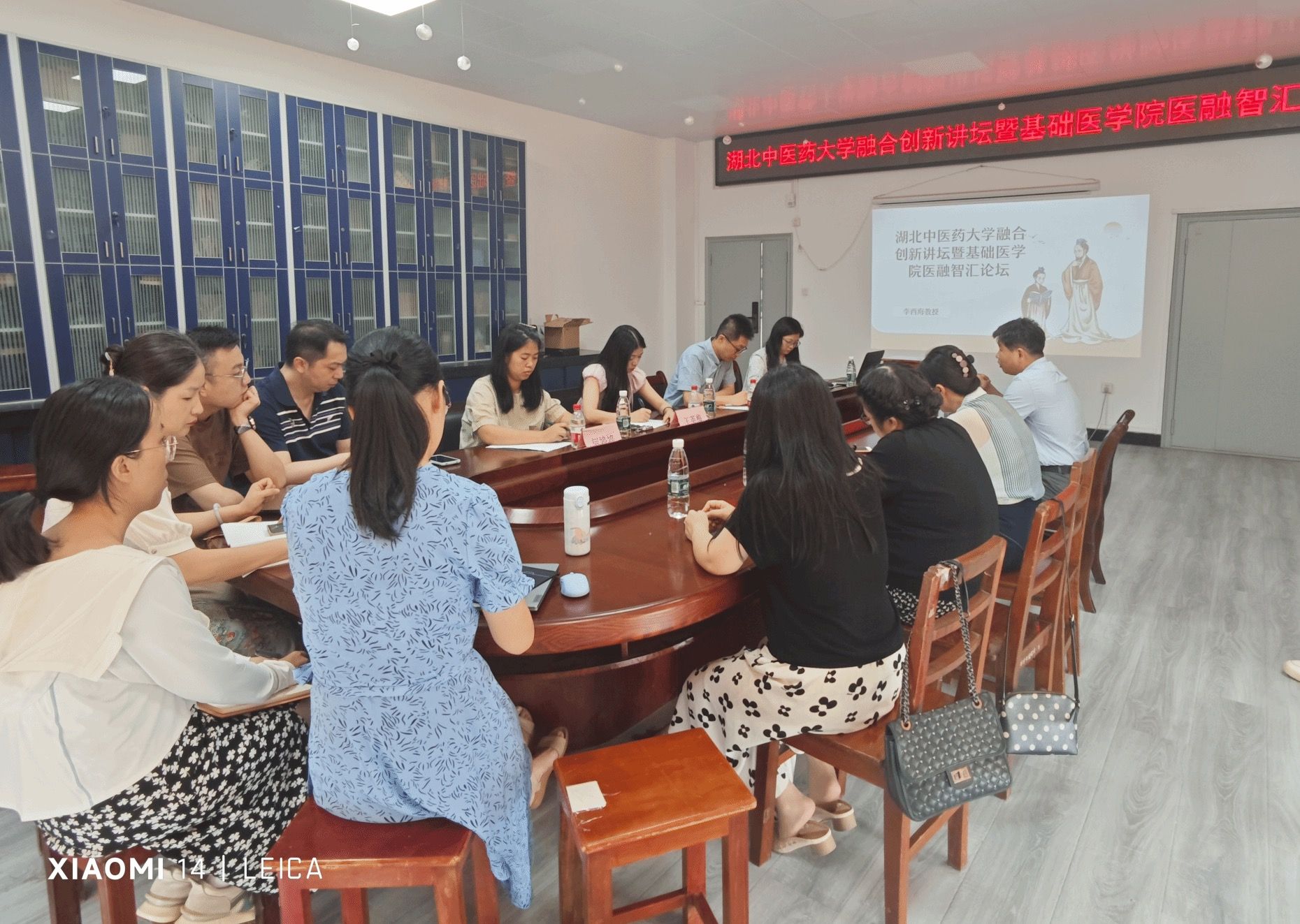 “医融智汇论坛”作为基础医学院特色创新工作--“创新西医基础对中医学科建设的实践支撑”的支撑载体,依托中西医结合基础学科开展系列学术沙龙活动,包括承办濒湖论坛和创新融合论坛、举办中西医融合科研团队学术例会分享会、开展现代科学技术和中医药统计学等技术培训,为中、西医科研人员提供学术思想提升和技术支撑,结合医教研一体化推进,将中西医两种医学体系的知识、技术、理念和方法进行融合,为学校一流学科建设提供实践支撑。