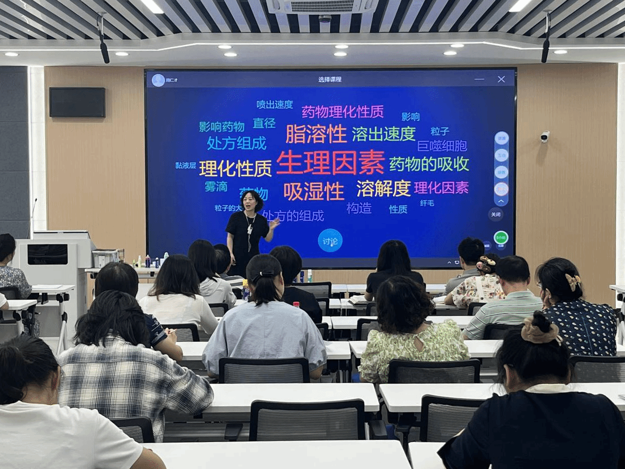 此次示范公开课由药学院药剂教研室洪怡副教授讲授《药剂学》课程中的气雾剂。洪怡副教授以云南白药气雾剂的来源及剂型改造导入,通过不同气雾剂的实物展示和图解说明,介绍其概念和分类,同时运用翻转课堂,小组讨论的方式,引导同学们对影响药物吸收的因素、制剂的处方设计展开探讨。课程中,洪怡副教授播放制剂生产教学环节视频并进行比较归纳,帮助同学们更直观地认识和理解各种生产工艺。课堂自然融入中医药特色和课程思政,产教融合特点明显。洪怡副教授用喷雾剂产品作为奖励,激发学生的学习兴趣和探索热情,并通过演示气雾剂的正确使用方法开展宣教,加强对学生职业方向的引导和职业素质的培养。
