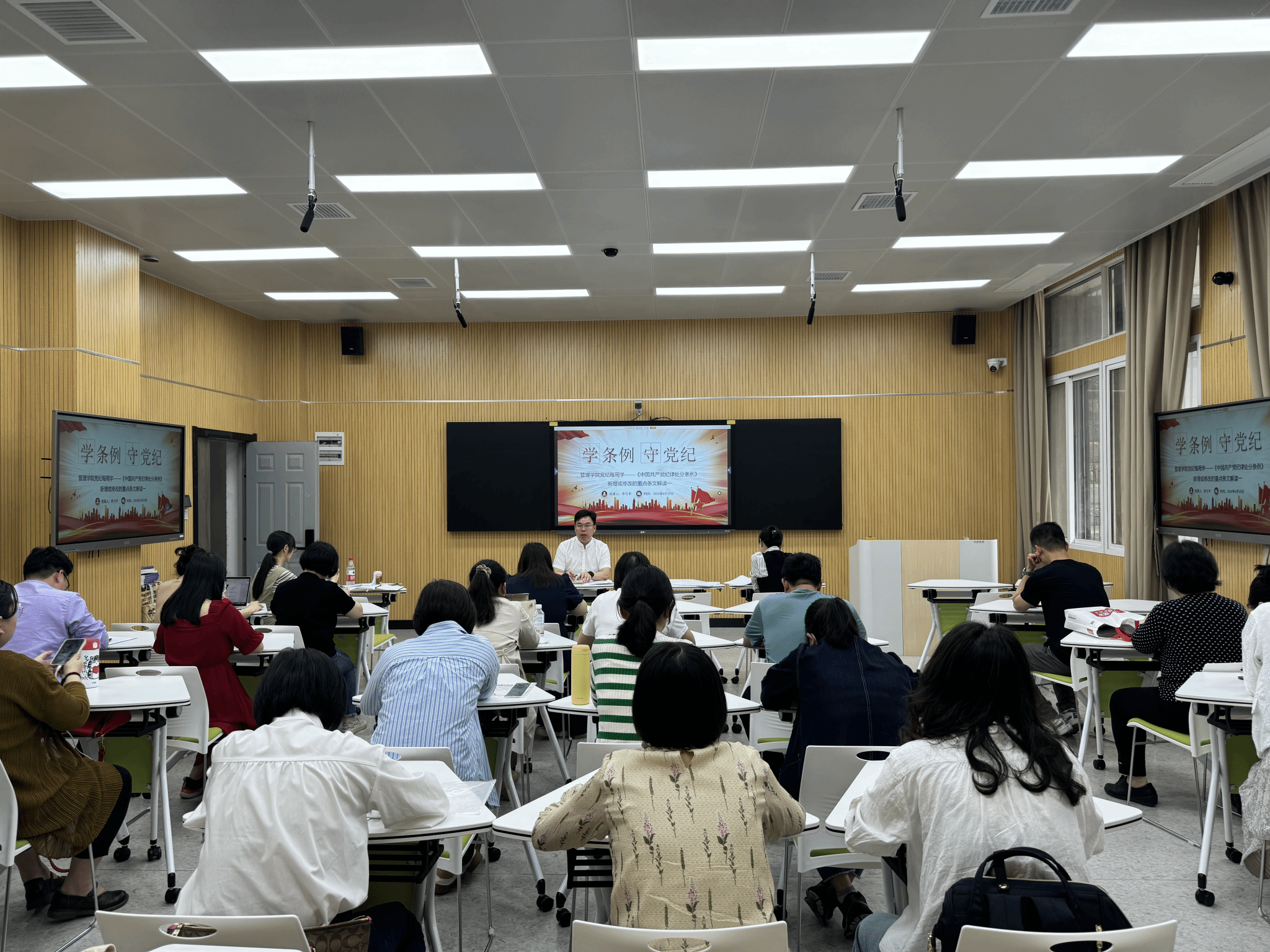 学院现场举办第一次党纪学习教育集中学习暨“党纪每周学——《中国共产党纪律处分条例》条文解读”活动,全体教职工对《中国共产党纪律处分条例》新增或修改的重点条文原文逐字逐句集中学习。