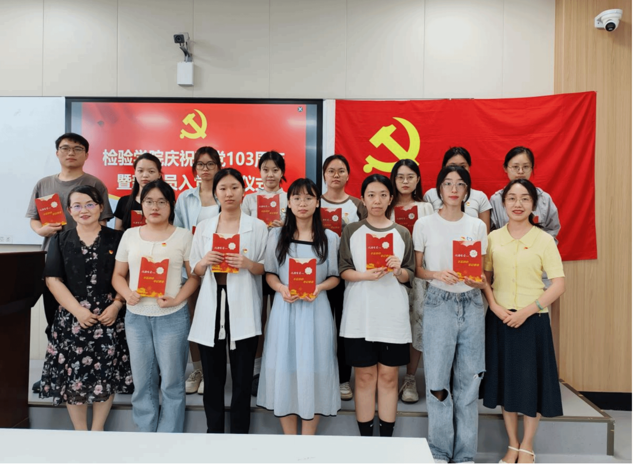 本网讯 7月1日,检验学院在黄家湖校区杏林阁J301举行庆祝建党103周年新党员入党宣誓仪式。学院党委负责人、学生党支部书记以及新党员参加活动。