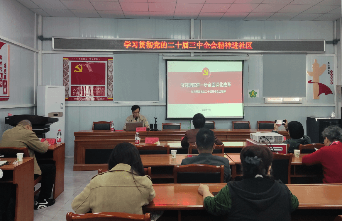 此次宣讲由马克思主义学院胡宗超博士主讲。胡宗超以“深刻理解进一步全面深化改革”为主题,从进一步全面深化改革的定位、原因、目标和举措四个方面,系统阐述了党的二十届三中全会精神的核心要义。他结合湖北实际及社区治理,用生动的案例、鲜活的故事和通俗易懂的语言,深刻阐释了全面深化改革对群众生活的深远影响,引导广大党员群众把思想和行动统一到全会精神上来,切实把全会精神转化为推动社区发展的强大动力。