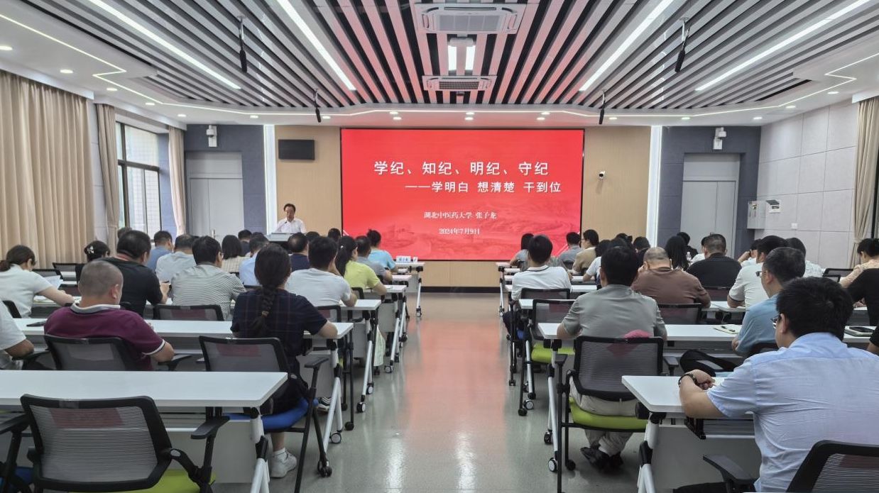 本网讯 根据党纪学习教育工作安排,学校于7月9日在黄家湖校区本草苑Y102组织开展年轻干部、新提拔干部和关键岗位干部党纪学习教育专题培训。年轻干部,新提拔中层干部,招生入学、科研经费管理、职称评审、合作办学、财务审计、物资采购、后勤基建等相关部门干部参加培训活动。校党委副书记张子龙作辅导报告。会议由党委组织部负责人主持。