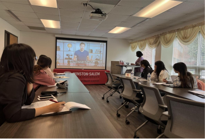 两校高度重视此次游学活动,成立工作专班,安排专项经费,认真遴选学员,周密安排行程。在为期两周的交流活动中,同学们在WSSU教授的指导下,深入了解美国护理学历史,美国健康系统与护理行业的发展现状,美国社区护理和老年人护理分析等;学生们通过小组讨论和项目合作,亲身体验了WSSU的护理专业教育模式。在全英文课堂环境中,每位同学踊跃发言,表达自己的观点,积极与教授们交流,增强了语言表达、沟通交流及团队协作能力,强化了护理专业知识与技能,促进了跨文化交流。理论学习之外,同学们还参加了丰富的实践课程。在WSSU健康科学学院领导老师的悉心安排和陪同下,同学们还到北卡州最大的医疗机构Novant Health Forsyth Medical Center进行了实地参访。
